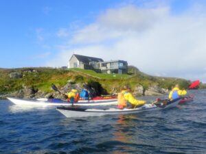 Surprise. surprise another windy day, which required careful planning to identify a safe paddling time and location This time the weather window was late afternoon and we returned to Grimsay where we had been on a tour of boat museums a couple of days earlier. We started from a scallop processing plant, where their shell disposal was forming a raised beach.