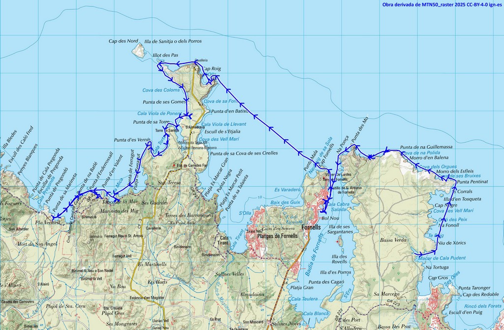 We made the decision to temporarily suspend our cave explorations and head across the open bay directly towards the next headland of Cap de Cavalleria