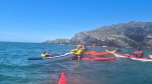 Here we met up with the other groups again. Off again after ‘lunch’ we paddled towards our final destination, taking in the scenery and hugging the coastline as we paddled and chatted, at which point Neil invented a new species ‘MAMIN’ (middle-aged man in neoprene).