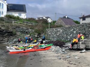 After a quick peak further along the coast, we turned around with the plan to stop over in Treaddur Bay on the way back. Paddling against strong headwinds into Treaddur Bay was the hardest part of the trip, which was rewarded by chill-out time on the beach and ice cream for some.