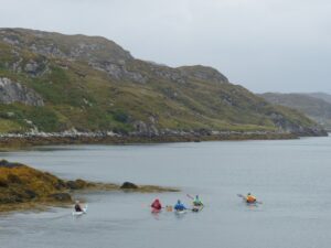 An attempt at surfing did not go well for me. I collided with John and ended up with a small puncture wound in my fibre-glass boat. This was somewhat embarrassing as I’d borrowed the boat from Sea Kayak Ulster. Joe was very relaxed about it, saying that the boat needed some repairs anyway and that it wasn’t an issue. The collision was entirely my fault but was a good learning point about boat control and situational awareness in the surf zone: if you can punch a hole in a fibre-glass boat, you can punch through a rib cage or a spine. I was lucky.