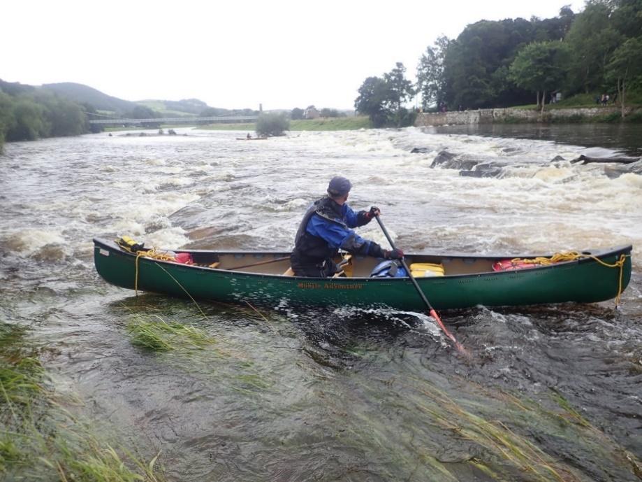 Most loaded the boats with a couple of large dry bags with tent, stove and three days food and clothes. The river was high for August with the current flowing swiftly – 1.5m to 2m on the Norham Gauge. Consequently, paddling was a delight with many small