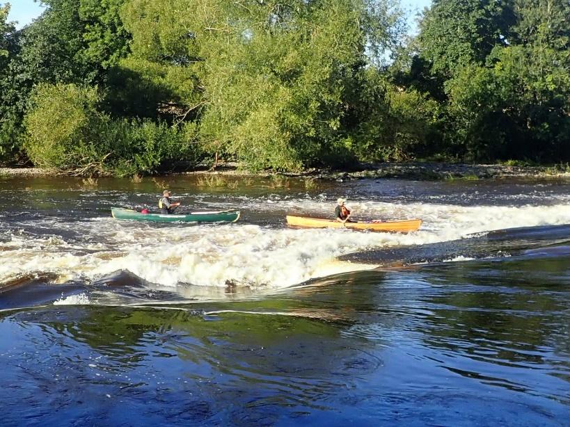After some more small rapids and 5kms we came across Banff Mill and its weir which we took on river left. This had a series of 4 small drops or weirs with a wave train through the last.