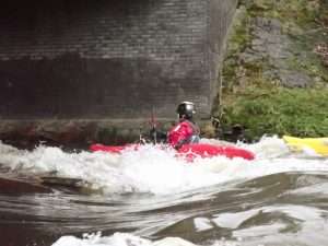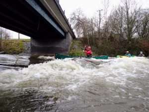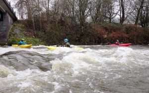 This level is still high for beginners – would be best 0.45m for as trip – got on at Summerseat and ran the broken weir and some did the Burrs Weir via the steps, Nick Andy & Oscar.