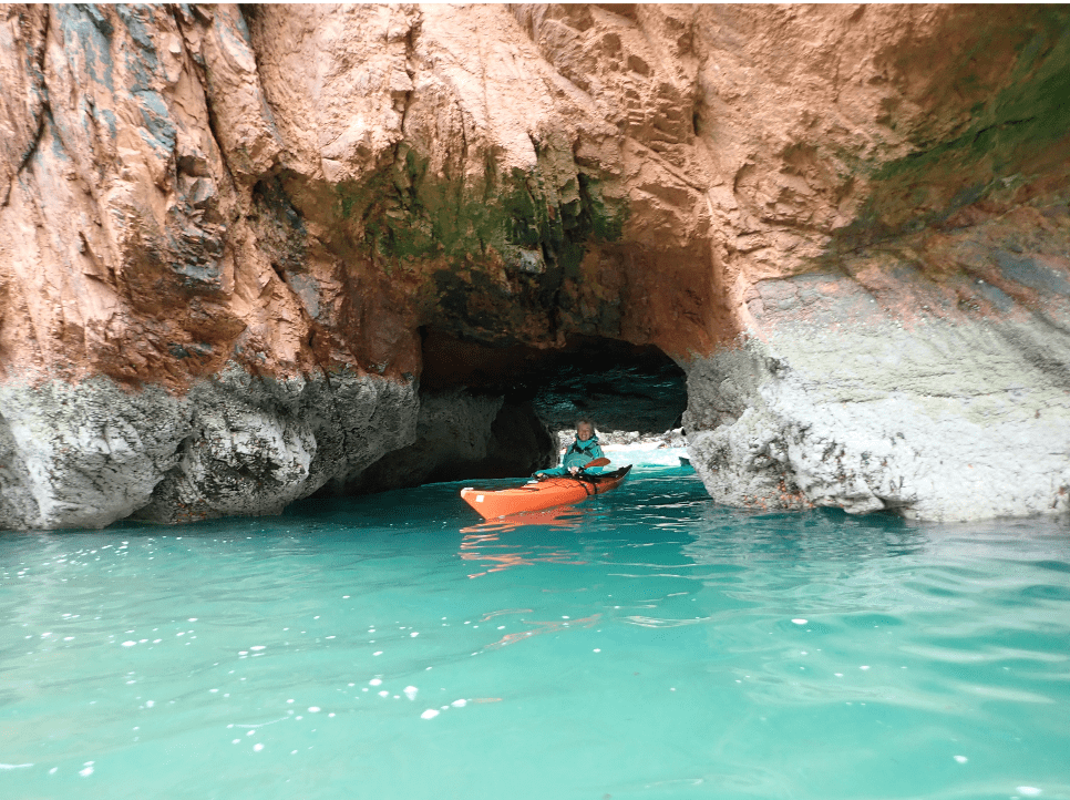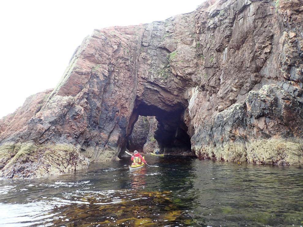 We could see the ocean smashing against the rocks on the opposite side, but there was little to no swell and just a light breeze where we were. After rounding Stack of Sumra we had lunch on a beach and a further explore on the way back, gentle assisted by a tail wind.