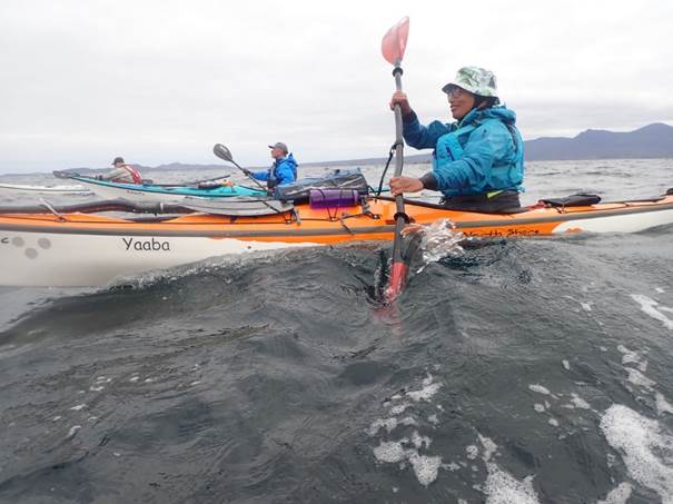 After that the coast took on a much rockier character as we passed around Greenstone Point. The winds continued to be light, and we had great paddling conditions.